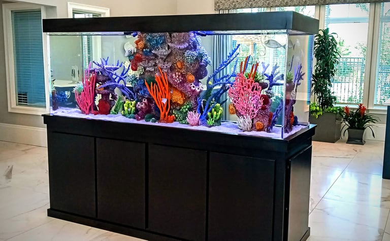 Fish Tank Masters specializes in custom saltwater aquarium maintenance. We design and install aquariums of all sizes and customize them to fit your needs. Fish and livestock are quarantined and guaranteed healthy before adding them to your aquarium. Your aquarium will be maintained through regular service visits to manage all the needs of your fish and equipment.